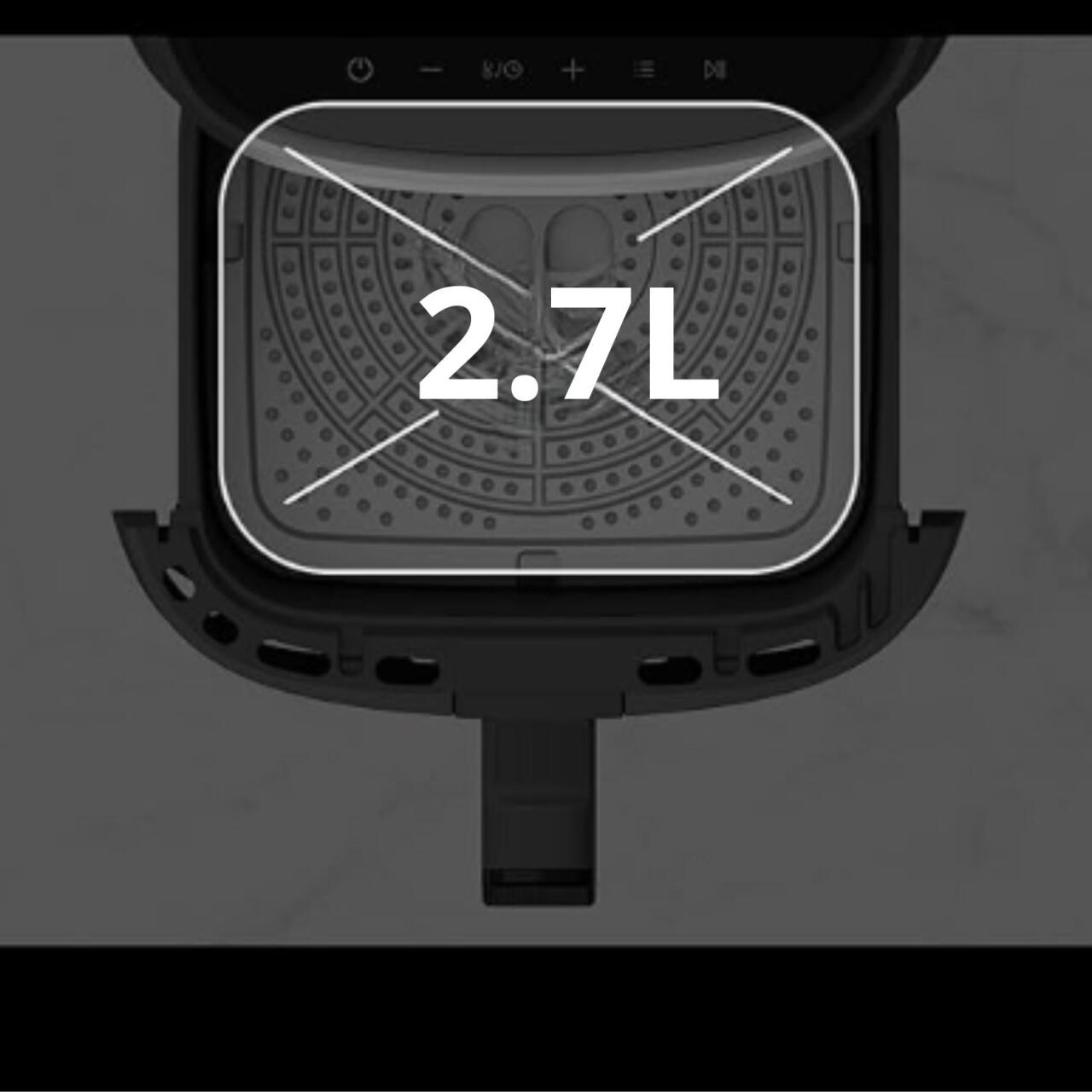 Graças à sua capacidade de 2,7 litros, é ideal para famílias ou para quando recebe convidados, permitindo cozinhar várias porções de uma só vez. Além disso, oferece um poupança de até 70% de energia e 46% de tempo em comparação com um forno de convecção, segundo testes realizados com 800 g de batatas fritas congeladas.