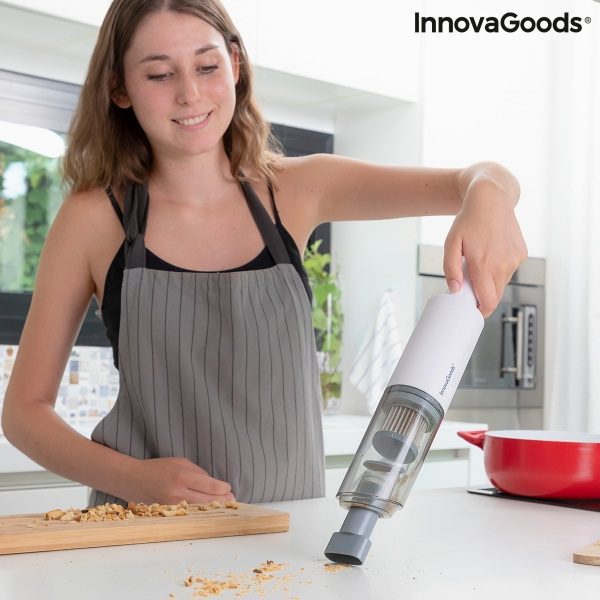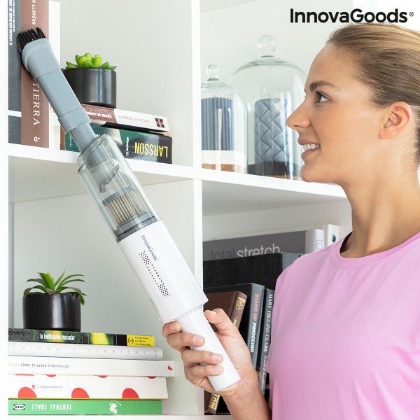 Aspirador de mão sem fios recarregável com acessórios muito prático e fácil de utilizar em qualquer lugar onde seja necessário graças ao design portátil, leve e compacto. Além disso é desmontável, o que facilita a limpeza e arrumação. O depósito amovível transparente permite visualizar o conteúdo facilmente. Tem um filtro amovível, lavável e reutilizável, o que permite poupar recursos, uma vez que evita a necessidade de substituições. Inclui três tipos de bocais de sucção para se adaptar às necessidades e caraterísticas da zona a limpar. O bocal de sucção largo é ideal para uma limpeza geral habitual (piso, migalhas, pó, pelos de animais de estimação, etc.). O bocal de sucção plano é útil para cantos, esquinas, bancos, janelas, zonas de difícil acesso, etc. O bocal de sucção com escova é perfeito para tapeçarias, almofadas, teclados, etc. Este aspirador multiusos com sistema de sucção ciclónica é muito versátil, uma vez que pode ser utilizado para uma limpeza rápida no automóvel, em casa, etc. eliminando eficazmente a sujidade. Tem um botão único on/off e o cabo USB para carregamento incluído tem um LED indicador de carga.