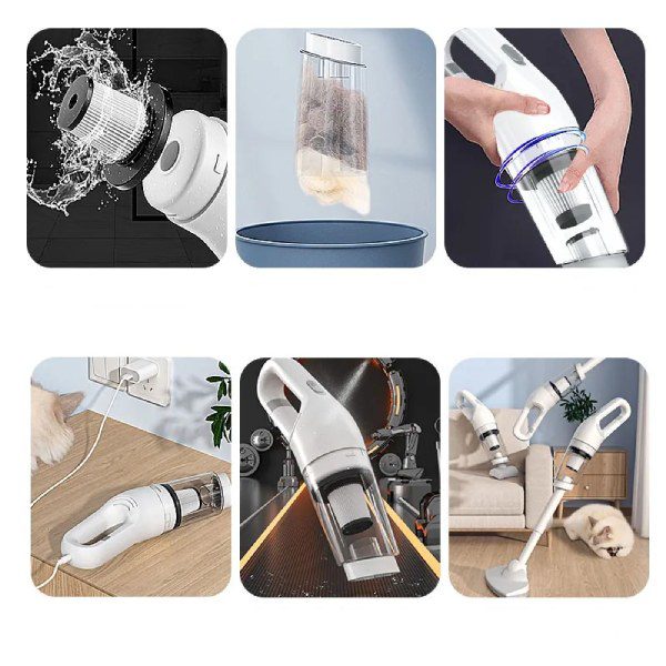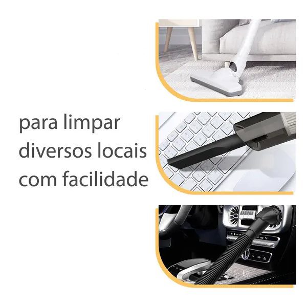 O pequeno aspirador ajudará a limpar a sua casa ou carro com eficiência e facilidade.