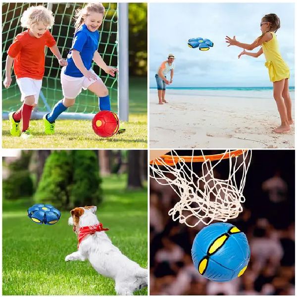 - A bola mágica se transforma em um divertido disco voador que, após alguns segundos, retorna a forma original de bola.