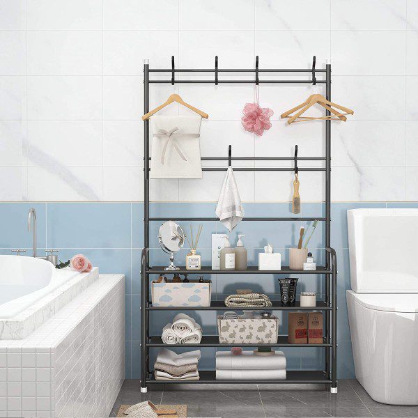 Rack de sapatos de 4 camadas com cabide é a melhor maneira de organizar em sua casa. O seu design elegante de cor e estrutura de 4 prateleiras pode ser colocado em qualquer lugar, não apenas na entrada, para sapatos, bolsas, lenços, chaves, guarda-chuvas, etc., mas também para guardar roupas no quarto. É feito com material sólido projetado para durar muito.