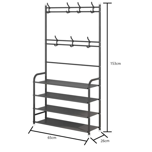 Design 3 em 1, suporte para sapatos, suporte para casacos e 8 ganchos são combinados para atender a todas as suas necessidades de armazenamento sem ocupar espaço.