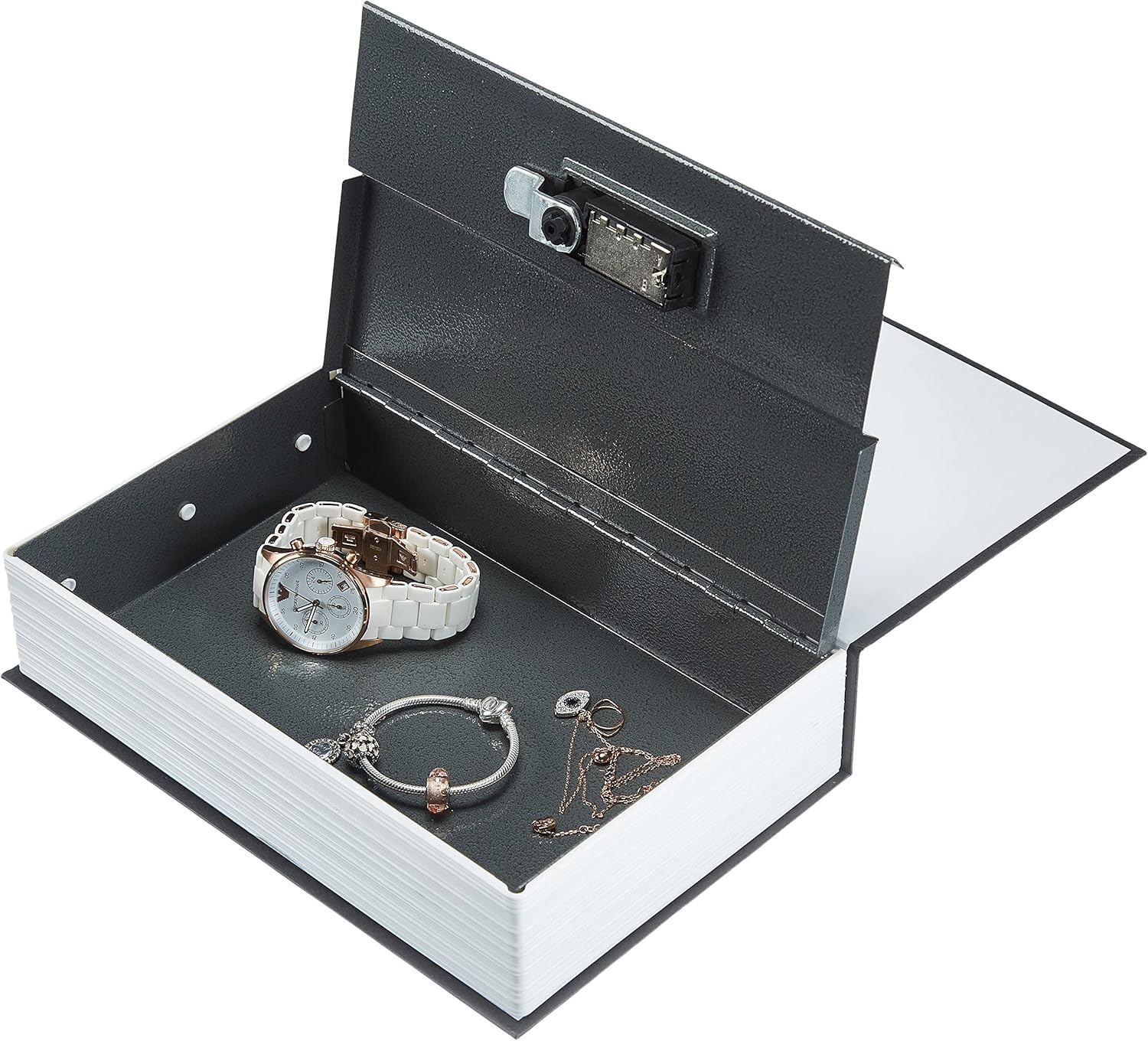 Mantenha os seus objetos de valor protegidos com esta caixa de segurança disfarçada de livro! Com um design discreto e realista, é ideal para guardar dinheiro, documentos, joias e outros itens importantes sem levantar suspeitas.