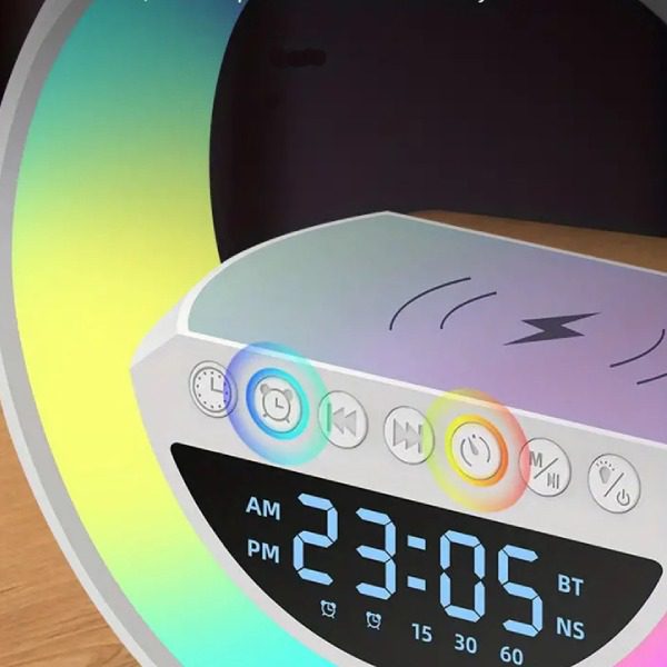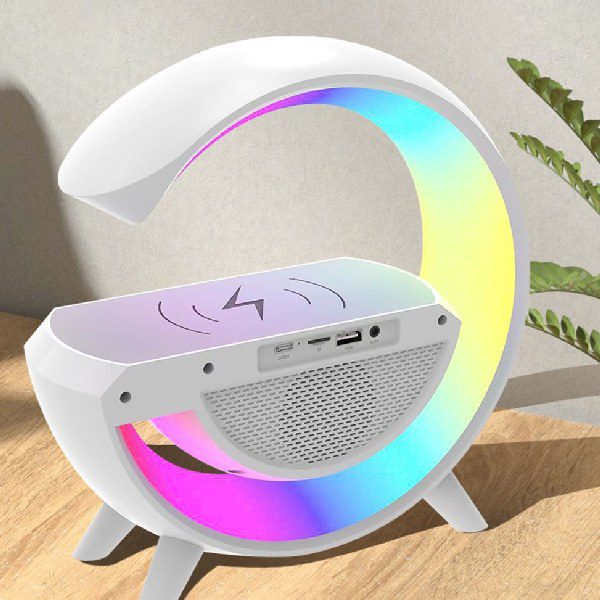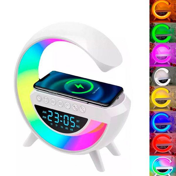 Esta coluna moderna oferece 6 funções em 1: controle de cores, carregador sem fio, rádio FM, alto-falante Bluetooth, relógio e despertador. A famosa lâmpada G, a mais popular do TikTok!