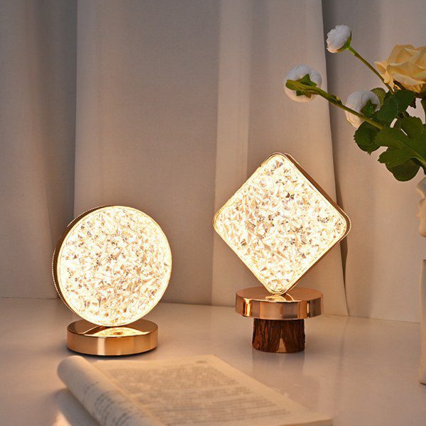 - Lâmpada de forma única: esta lâmpada de mesa tem uma forma losango, que fica muito bonita e luxuosa quando acesa. Não só pode ser usado para decoração, mas também pode ser usado como abajur para criar uma atmosfera diferente.