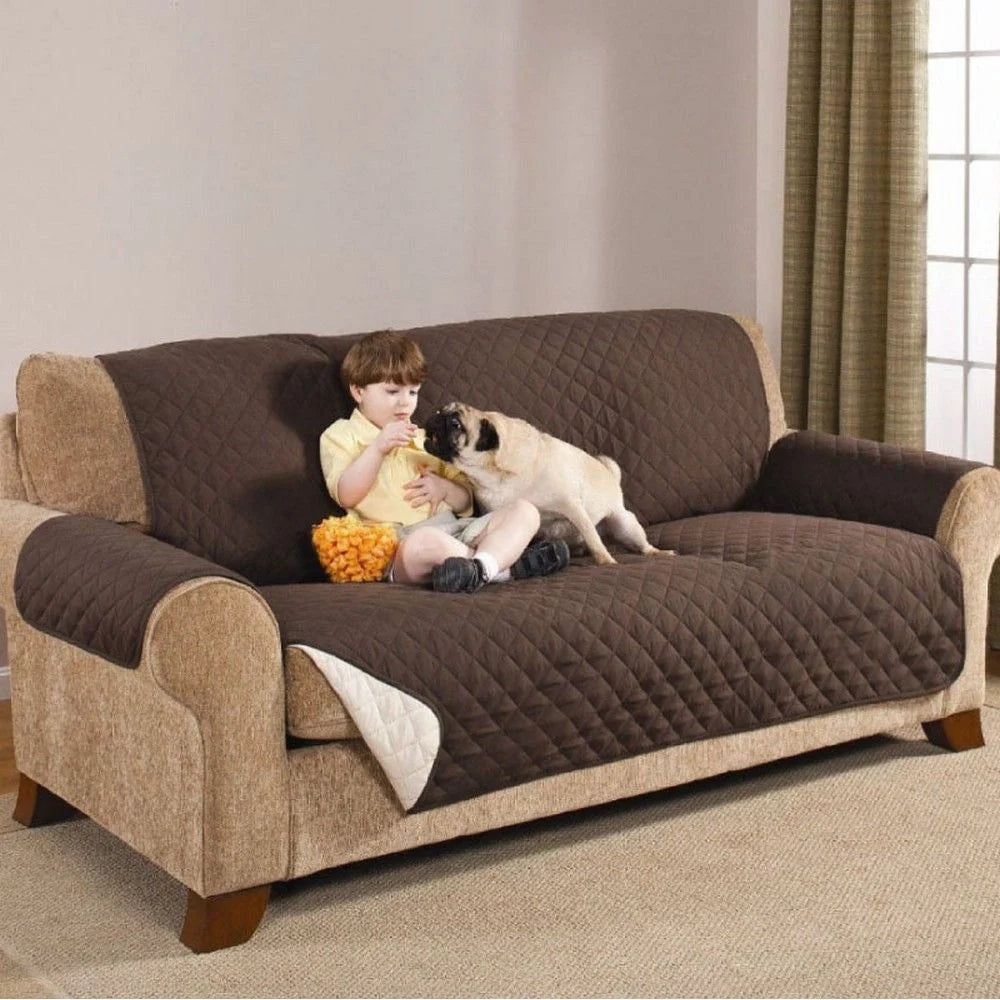 Capa Protetora de Sofá Reversível Castanho - 2 Lugares