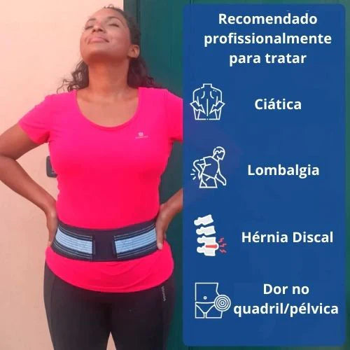 A Cinta proporciona estabilidade à coluna vertebral e atua como um reforço externo para a articulação sacroilíaca, ajudando-a a recuperar o seu movimento normal.
