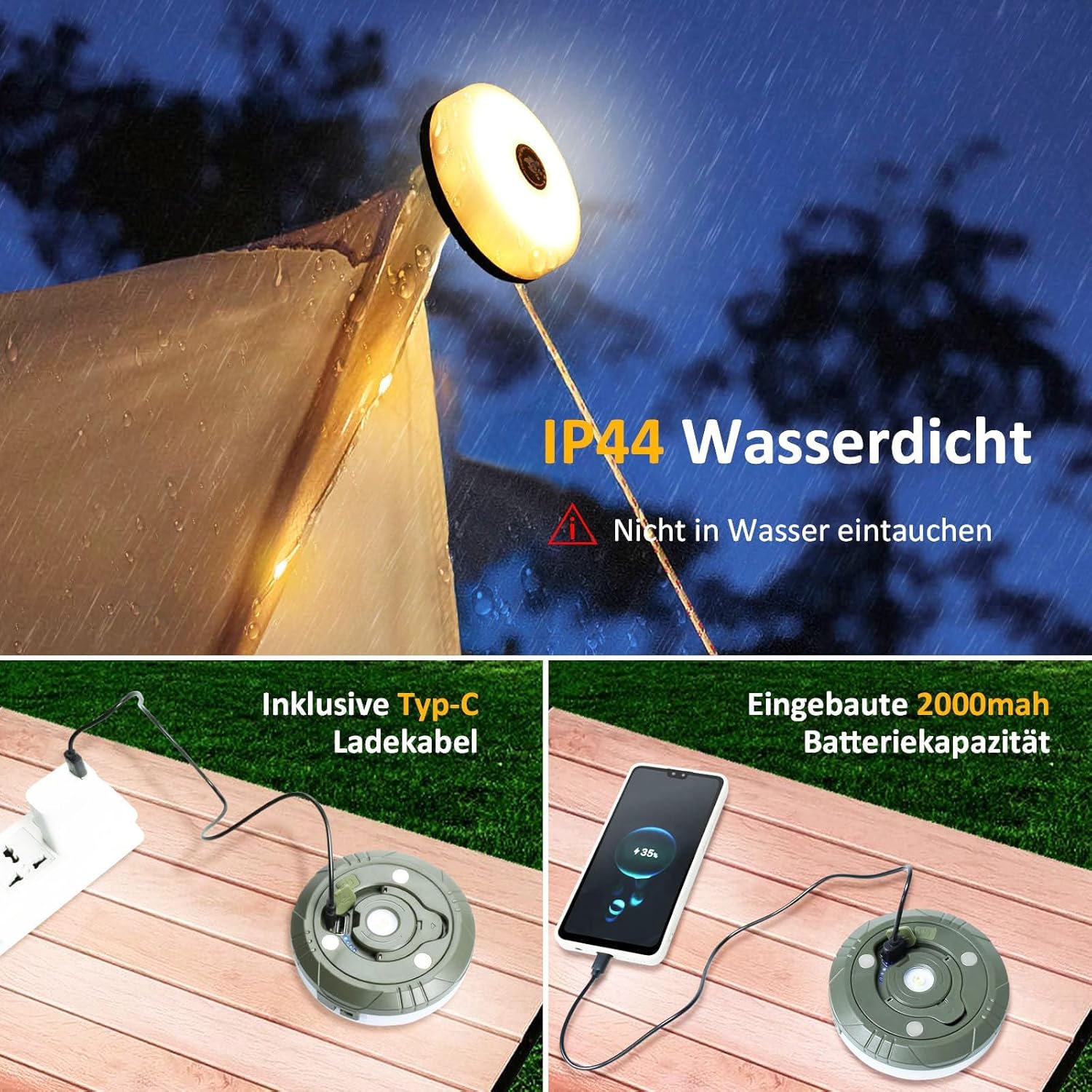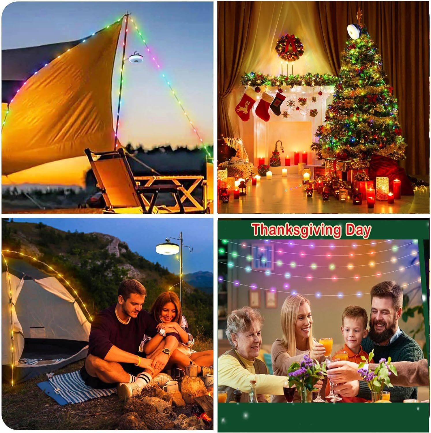 4 em 1: Cordão de luzes branco quente, luzes de campismo, luzes de trabalho e lanterna de emergência.