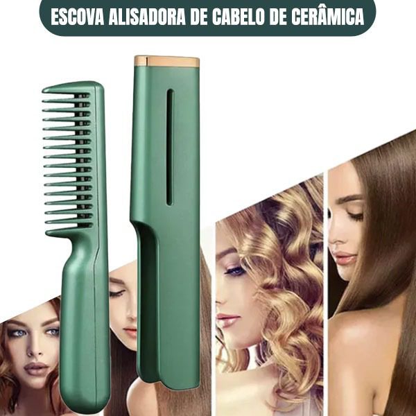 Mini pente de alisamento de cerâmica portátil. Elegante e compacto, pode ser levado na bolsa, e a interface USB permite conexão com diversos dispositivos móveis.