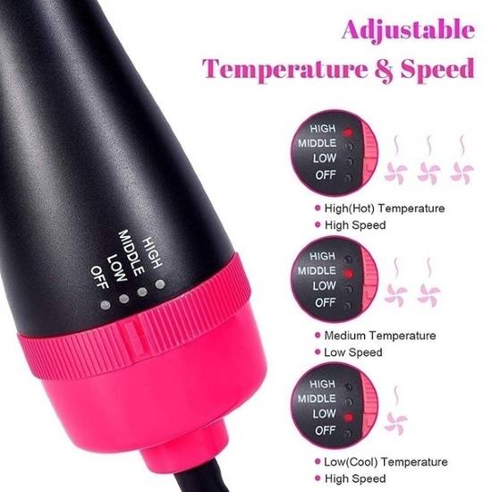 Seca, penteia e aumenta o volume do cabelo numa só passagem! Poupe tempo e dinheiro - agora pode criar um visual profissional em casa, rápida e facilmente. O revestimento de cerâmica protege o seu cabelo contra danos. Ventilações únicas e design oval para uma secagem mais rápida e suave. Várias configuração de calor: baixa, média e alta.