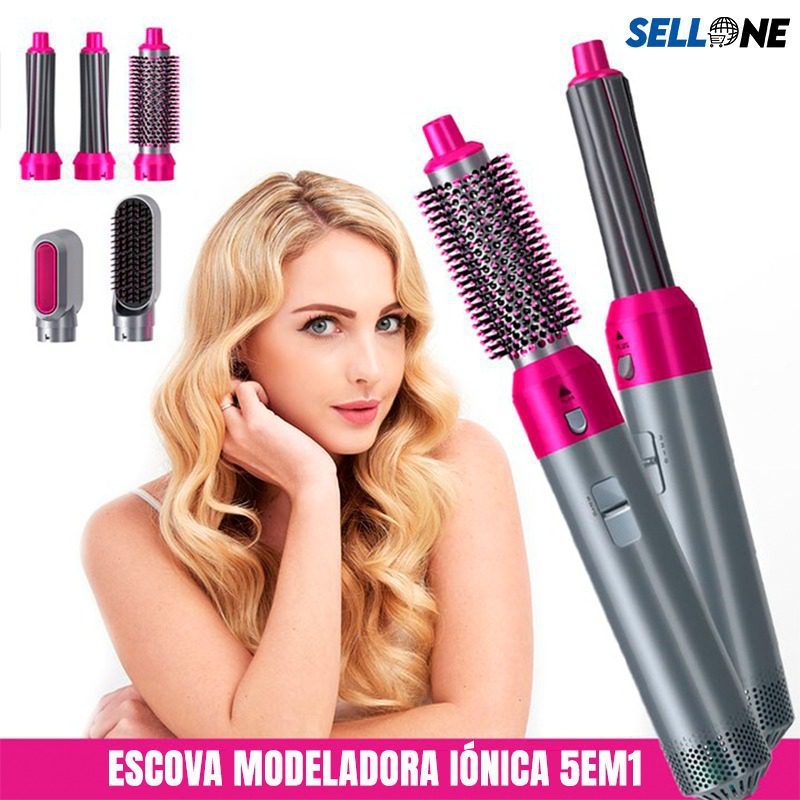 A escova modeladora projetada para todos tipos de cabelos: permite enrolar, ondular, alisar e secar o cabelo, sem danificar os fios e realçando o brilho natural.