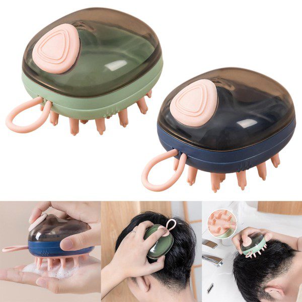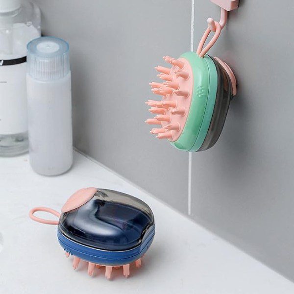 Esta escova de cerdas macias de silicone é fácil de usar, usada como escova de shampoo, escova esfoliante e massajadora de couro cabeludo.