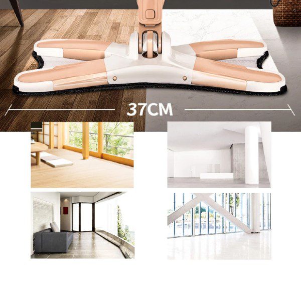 Com um corpo elegante e uma cabeça de mopa em forma de x, possui sistema de auto torção sem as mãos, que imita o movimento de torcer as mãos e manterá as suas mãos longe de água suja. Simplesmente empurrando o poste para baixo, você pode torcer a água e a sujeira em segundos, a lavagem e a secagem serão concluídas ao mesmo tempo.