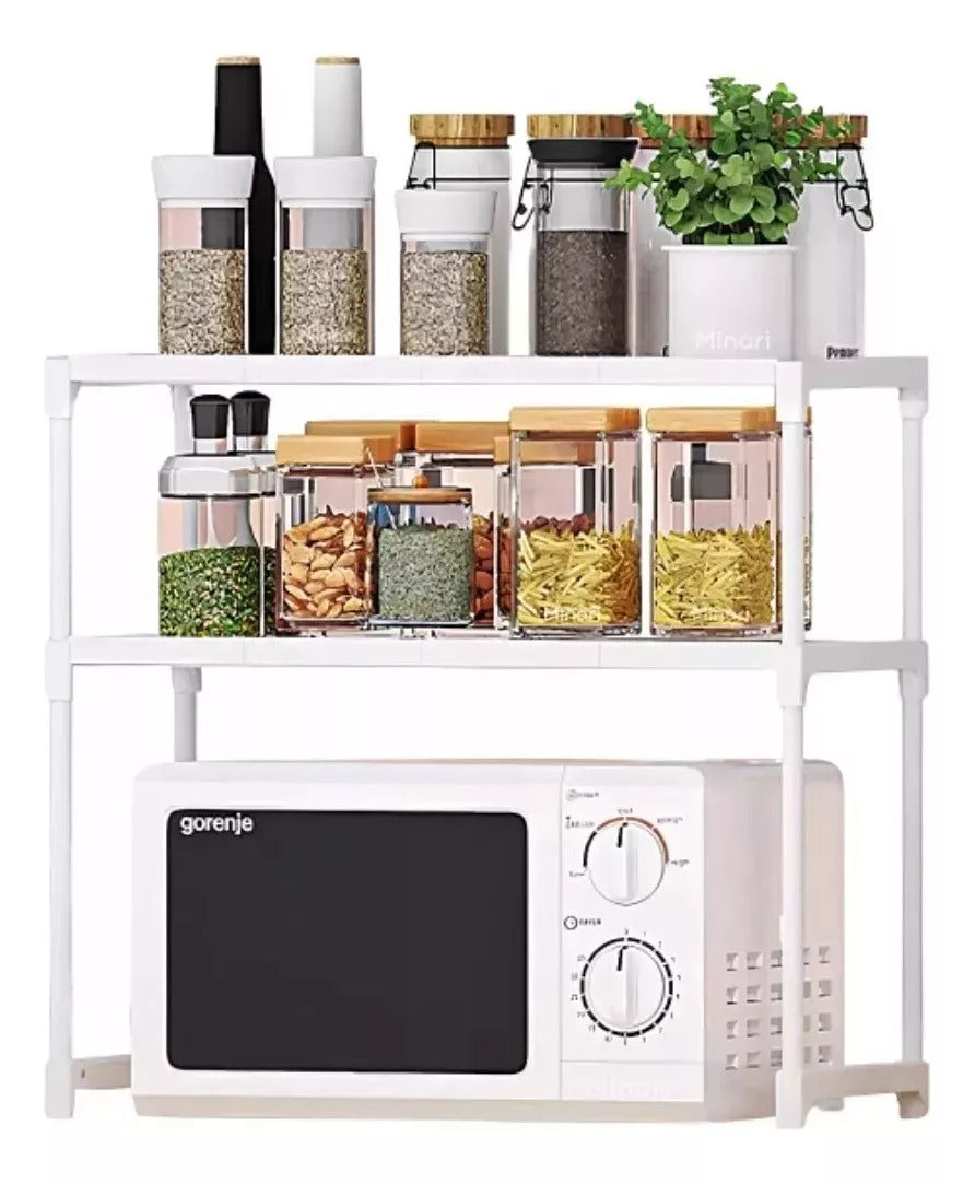 Mantém a tua cozinha organizada com esta estante extensível para micro-ondas. O seu design ajustável adapta-se a diferentes tamanhos de eletrodomésticos, oferecendo espaço adicional para utensílios, especiarias ou acessórios 🍽️✨
