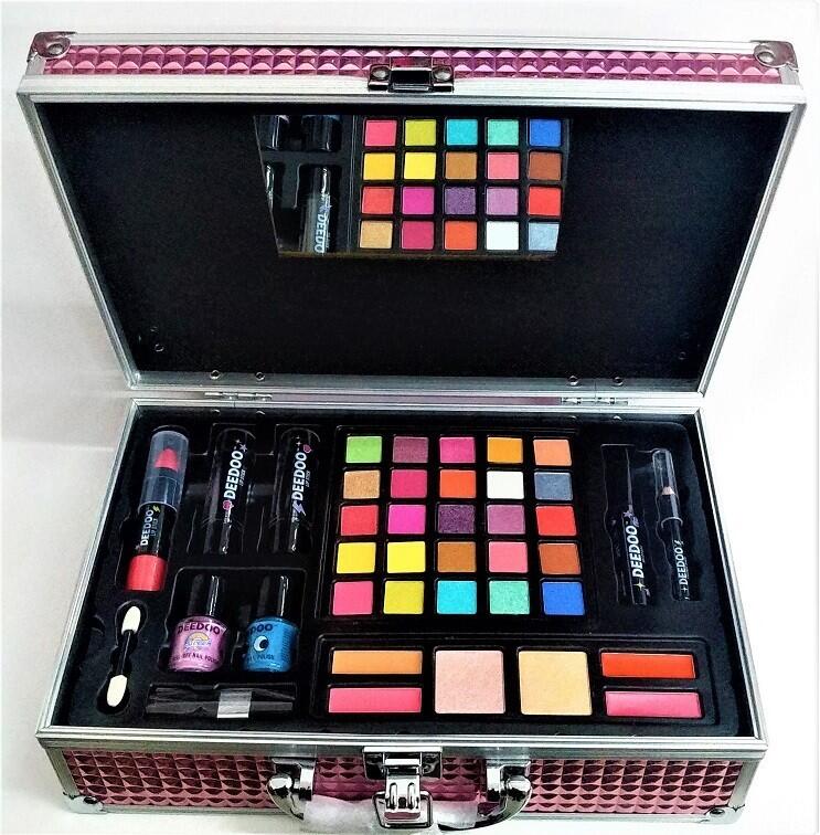 - Conteúdo: Sombras, blushes, glosses, vernizes e espelho embutido.
