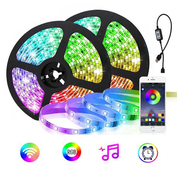 As faixas de luz LED controladas por um smartphone. Nenhuma configuração ou gerenciamento de rede necessário.