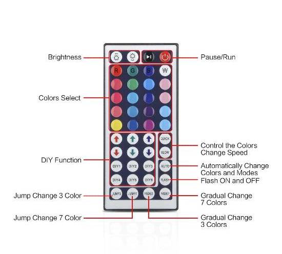 - Controle com 4 modos: Flash, Strobo, Fade, Smooth