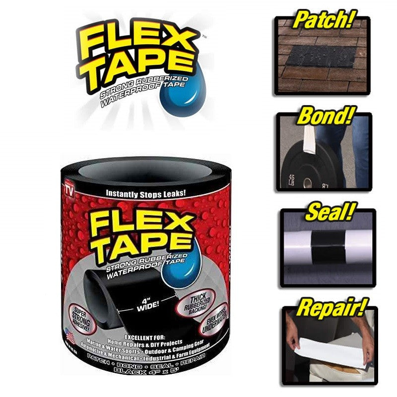 A Flex Tape é uma fita super resistente, impermeável e flexível que remenda, cola e sela praticamente tudo – até mesmo sob água! Ideal para emergências ou reparações rápidas em casa, no carro, no barco ou em acampamentos.