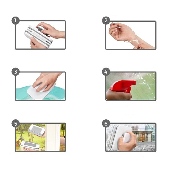 Nota: Vidro de espessura diferente deve ser usado em diferentes limpadores de vidro magnético, caso contrário, não pode se mover ou cair do vidro. Certifique-se de aplicar um detergente no algodão de limpeza. Mova lentamente o limpador de janela magnético durante o uso, quanto mais lenta a velocidade de movimento.