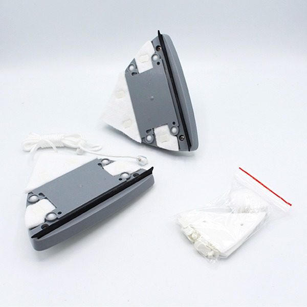 Limpador magnético de janela de dupla face: limpador de vidro magnético em forma triangular, com poderoso íman interno que trava os dois lados de limpeza juntos, fornece uma limpeza abrangente da janela dentro e fora. Quando se move de um lado, o outro segue. Limpe o vidro dos dois lados da janela.