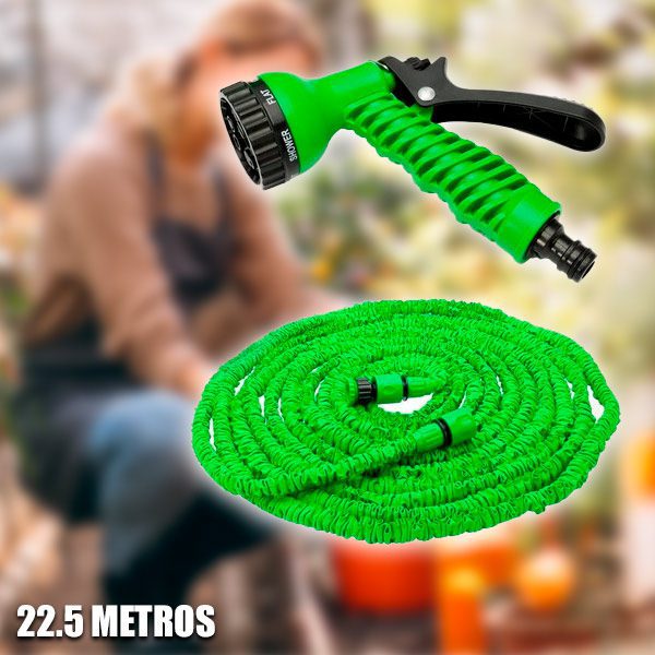 A Mangueira Extensível Magic Hose 22,5 metros é a única mangueira que expande automaticamente quando se abre a torneira da água. Devido à pressão exercida pela água, a mangueira vai aumentando até ficar com o triplo do seu tamanho inicial, ou seja, até um tamanho máximo de 22,5 metros de comprimento.