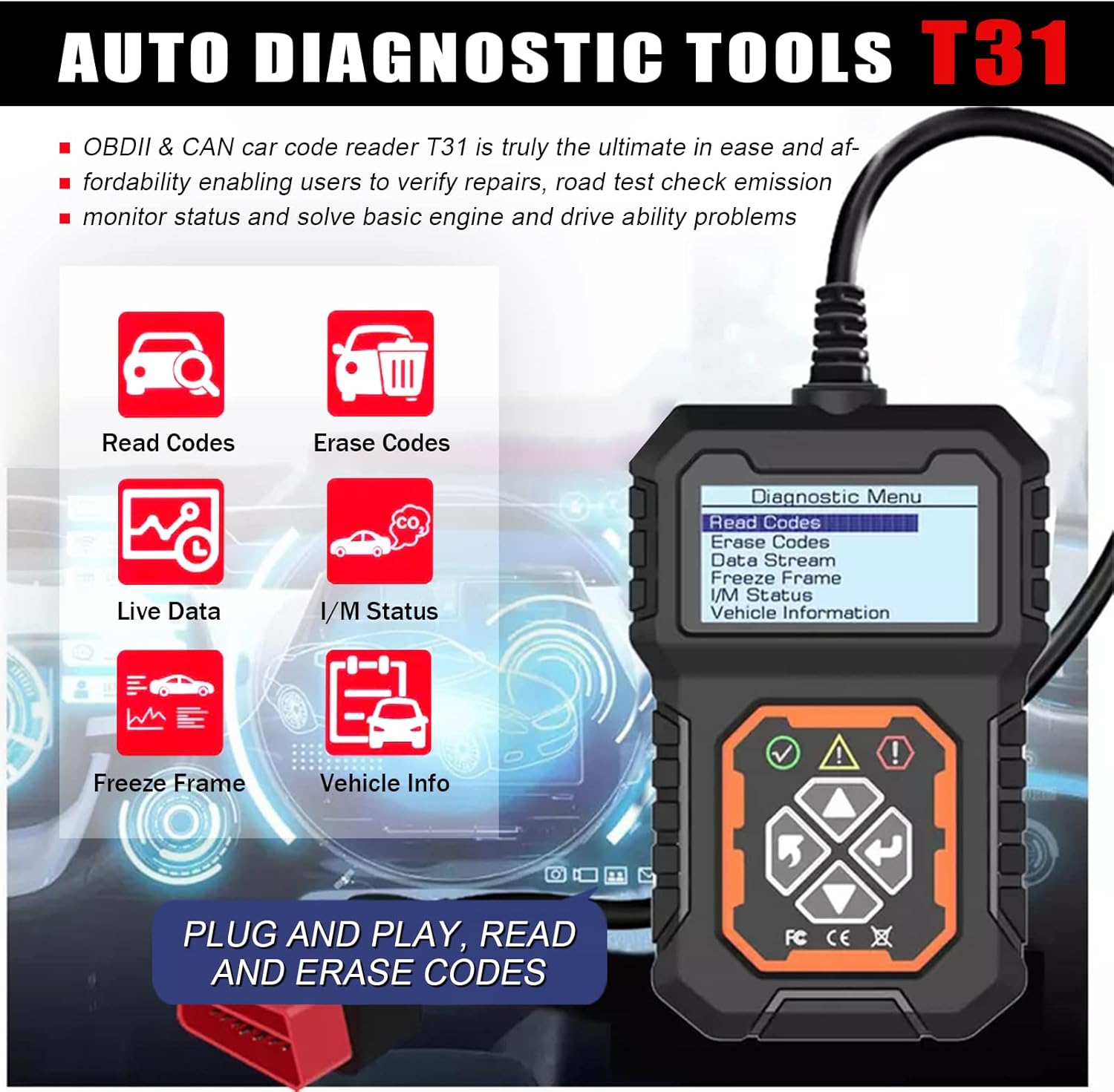 ✔ Plug & Play – Conecte diretamente ao veículo sem necessidade de bateria ou instalação de software.