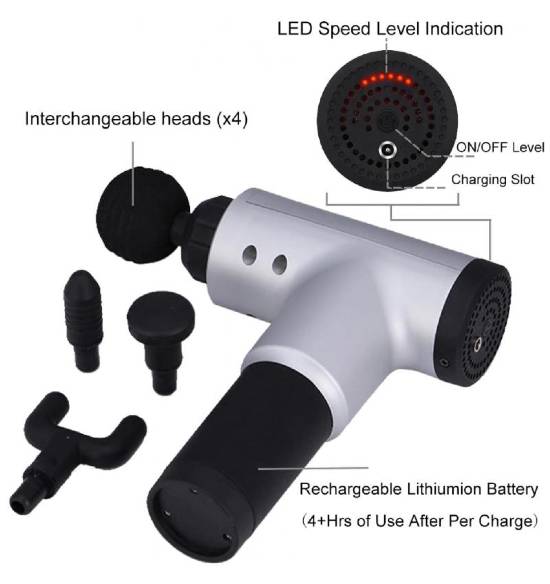 - Inclui 4 cabeças diferentes, tornando fácil alcançar músculos de difícil acesso.