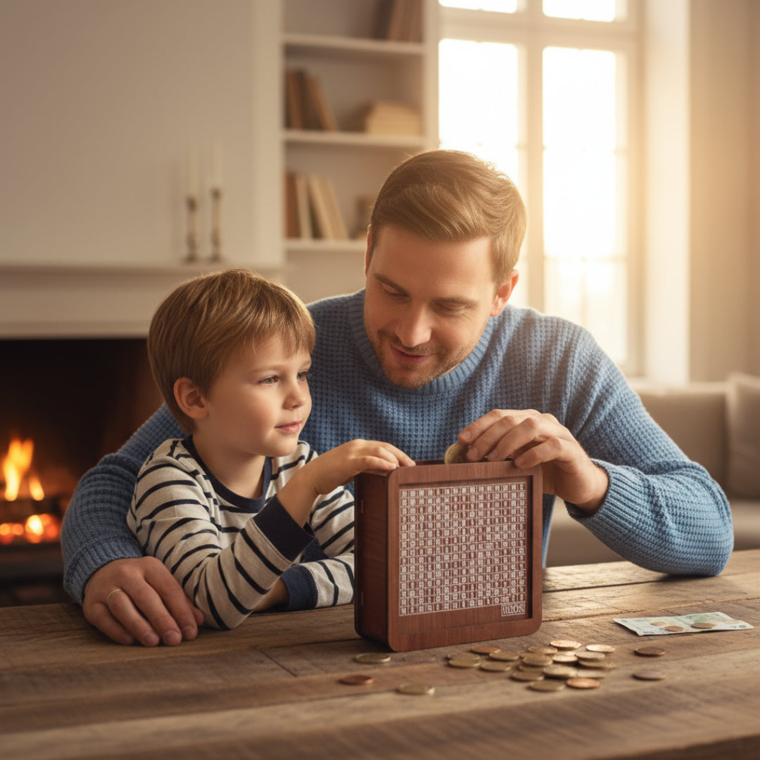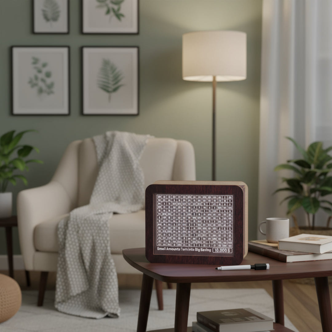 🏦 Mealheiro de Madeira com Quadro Acrílico – Poupança Organizada e Divertida! 💰