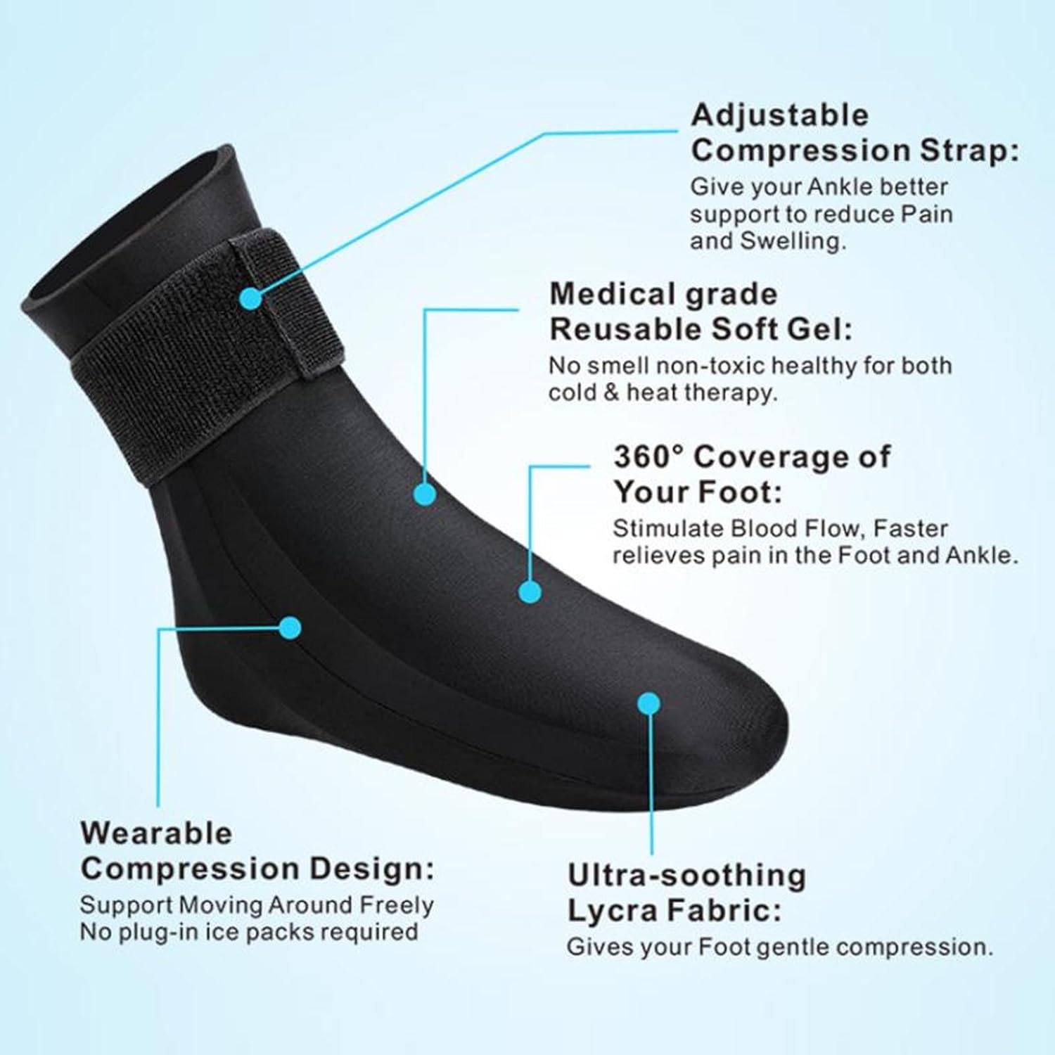A Meia de Terapia Quente e Fria em Gel Reutilizável é a solução ideal para aliviar dores, reduzir o inchaço e promover a recuperação de lesões nos pés e tornozelos. Com um design inovador e prático, combina compressão ajustável com os benefícios do calor e frio terapêuticos, proporcionando suporte eficaz e estabilização sem comprometer a mobilidade.