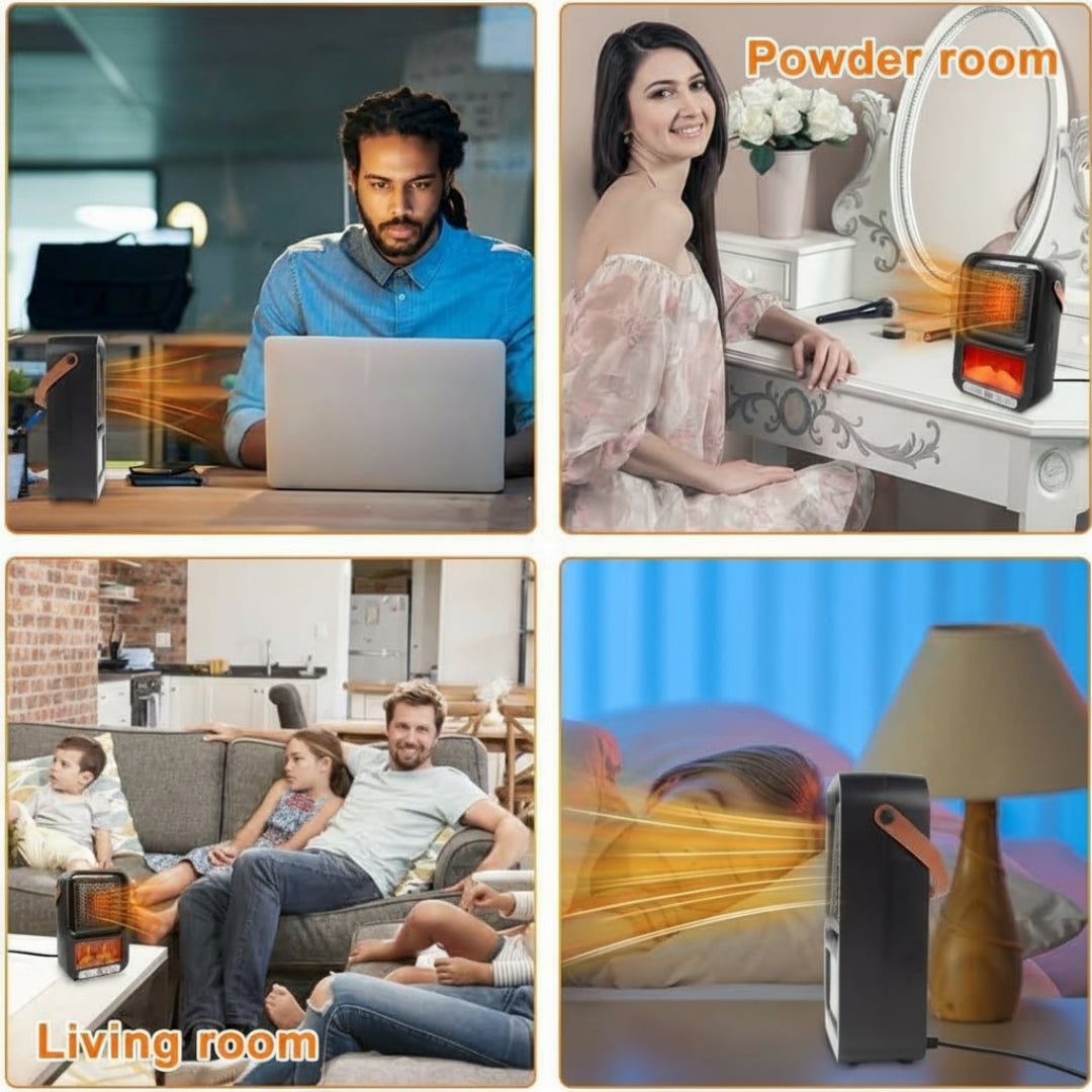 Ideal para quartos, escritórios, salas pequenas ou espaços de trabalho, este mini aquecedor adapta-se facilmente a qualquer ambiente. A sua portabilidade e controlo remoto fazem dele o companheiro ideal para os dias frios.