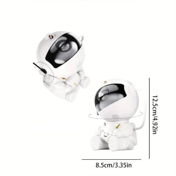 Também pode ajustar o brilho e a frequência de piscar das estrelas. A luz estrela ou a luz de neblina podem ser ligadas simultaneamente ou separadamente. A cabeça e o corpo do astronauta estão conectados por uma conexão magnética que pode ser girada 360°, facilitando o ajuste do ângulo de projeção da nebulosa sem limitação.