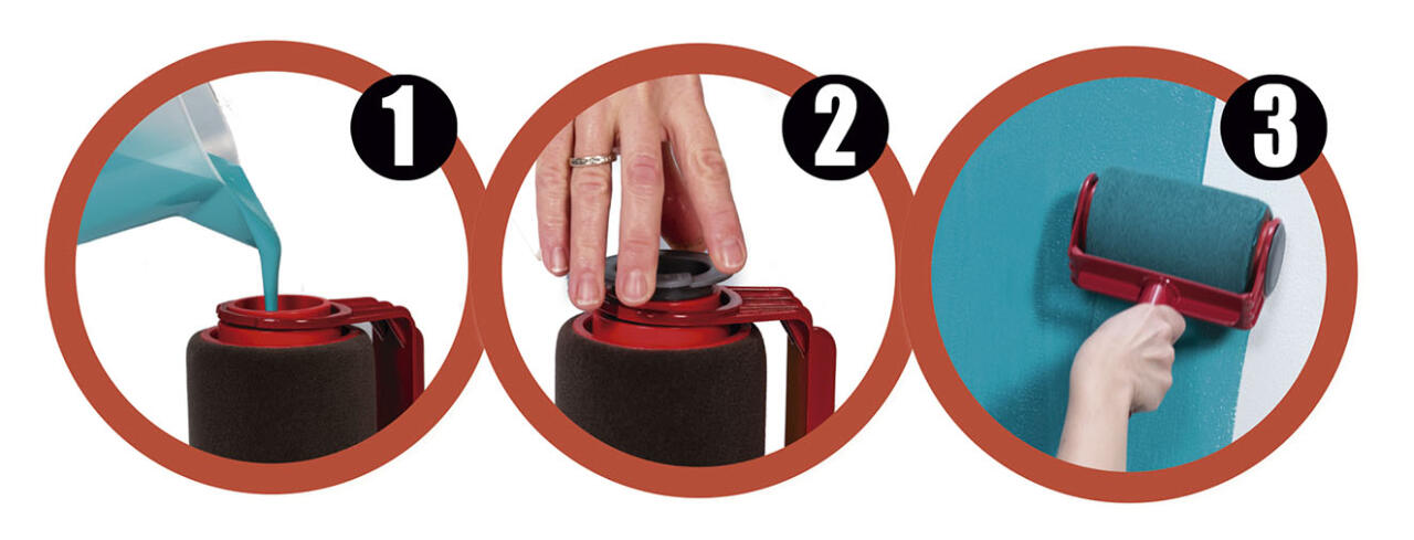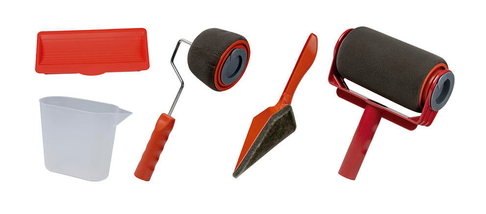Sem desperdícios nem sujidade: rolo com depósito integrado, dispensa tabuleiros de tinta.