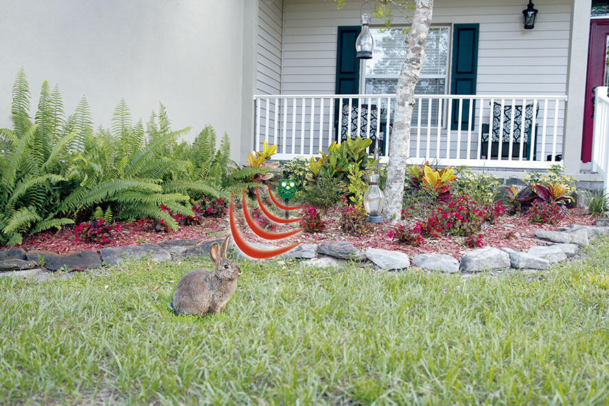 Esta combinação assusta e afasta aves e pequenos animais, como gatos, roedores ou guaxinins, de forma imediata, sem causar qualquer dano.