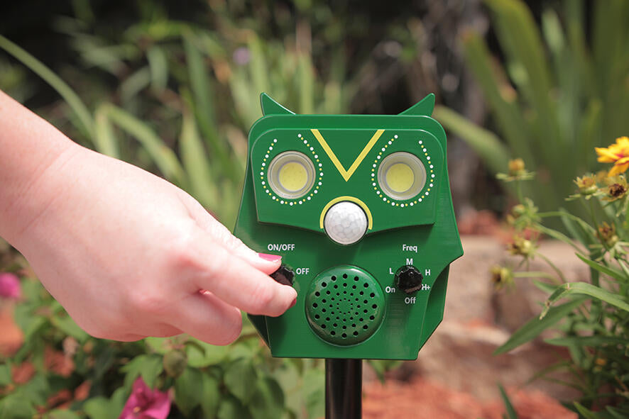 Proteja o seu jardim, horta, terraço ou pátio de forma eficaz e totalmente ecológica com o STARLYF OWL GUARDS, o inovador espanta-animais ativado por movimento que combina design inteligente, tecnologia moderna e funcionalidade.