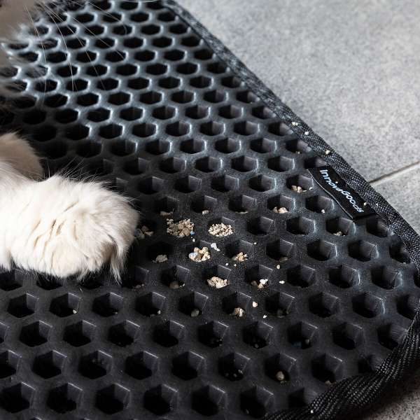Esta esteira para gatos tem uma textura suave e agradável para o animal. Ao ser impermeável, também é adequada para recolher a água que cair ao beber no bebedouro. Pode ser dobrada a meio para reduzir o tamanho e ocupar menos espaço ao guardar ou transportar.
