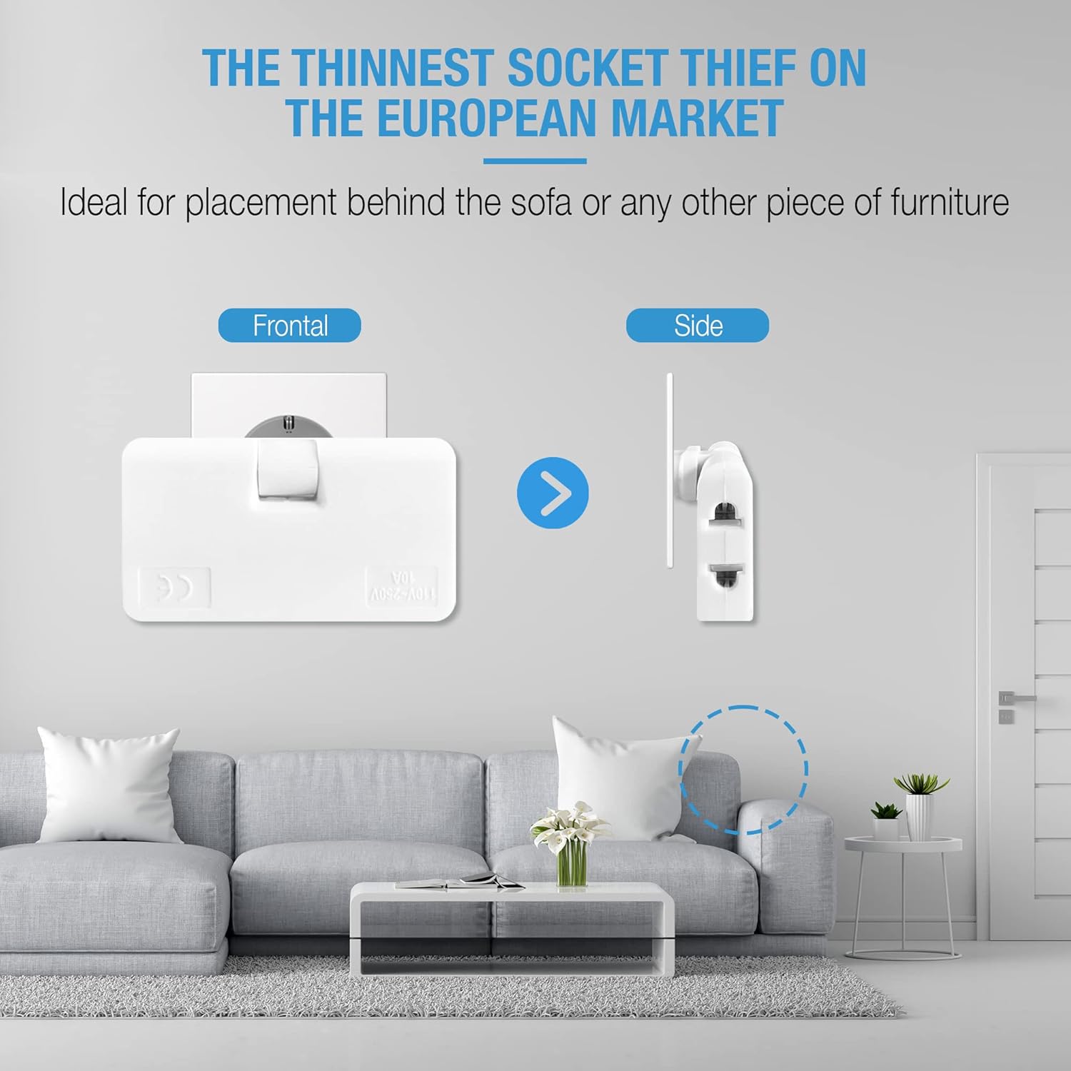 O plugue mais fino do mercado: Com um design ultrafino, é ideal para ser colocado em locais de difícil acesso, como atrás de sofás, armários, estantes ou mesas de cabeceira, economizando espaço e mantendo a área organizada.