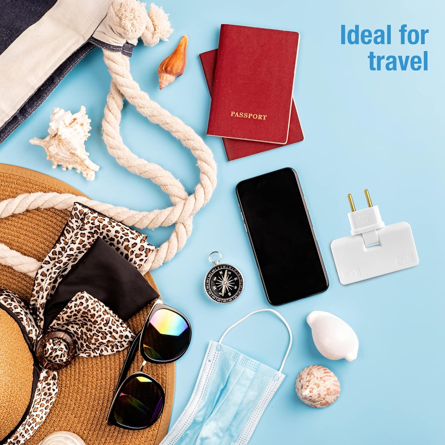 Compacto e portátil: Leve e fácil de transportar, este plugue plano cabe até no bolso, tornando-se perfeito para quem precisa de uma solução prática em casa ou durante viagens.