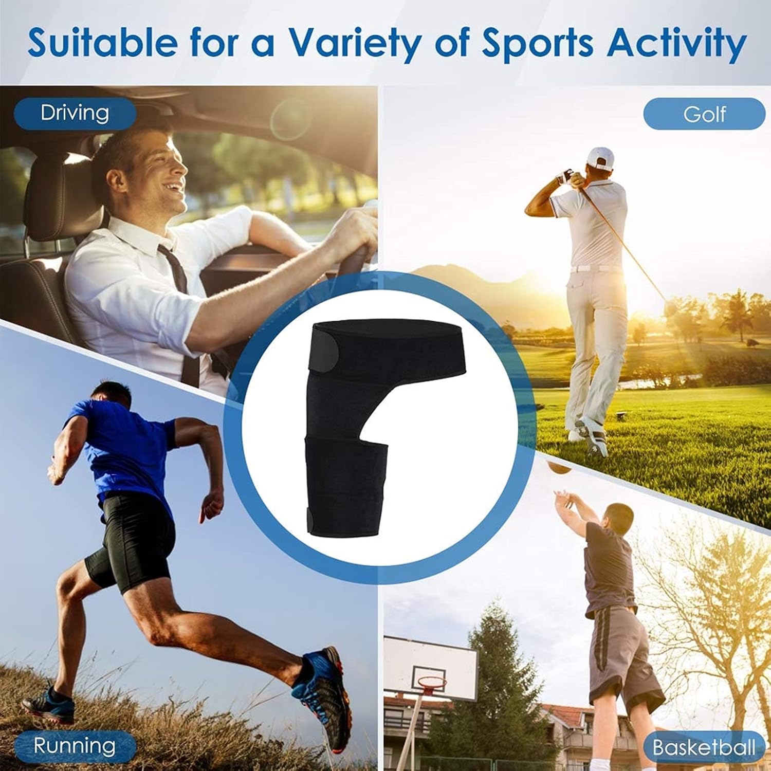 Perfeita para atletas, pessoas ativas ou em recuperação — a sua aliada na proteção da anca e coxa.